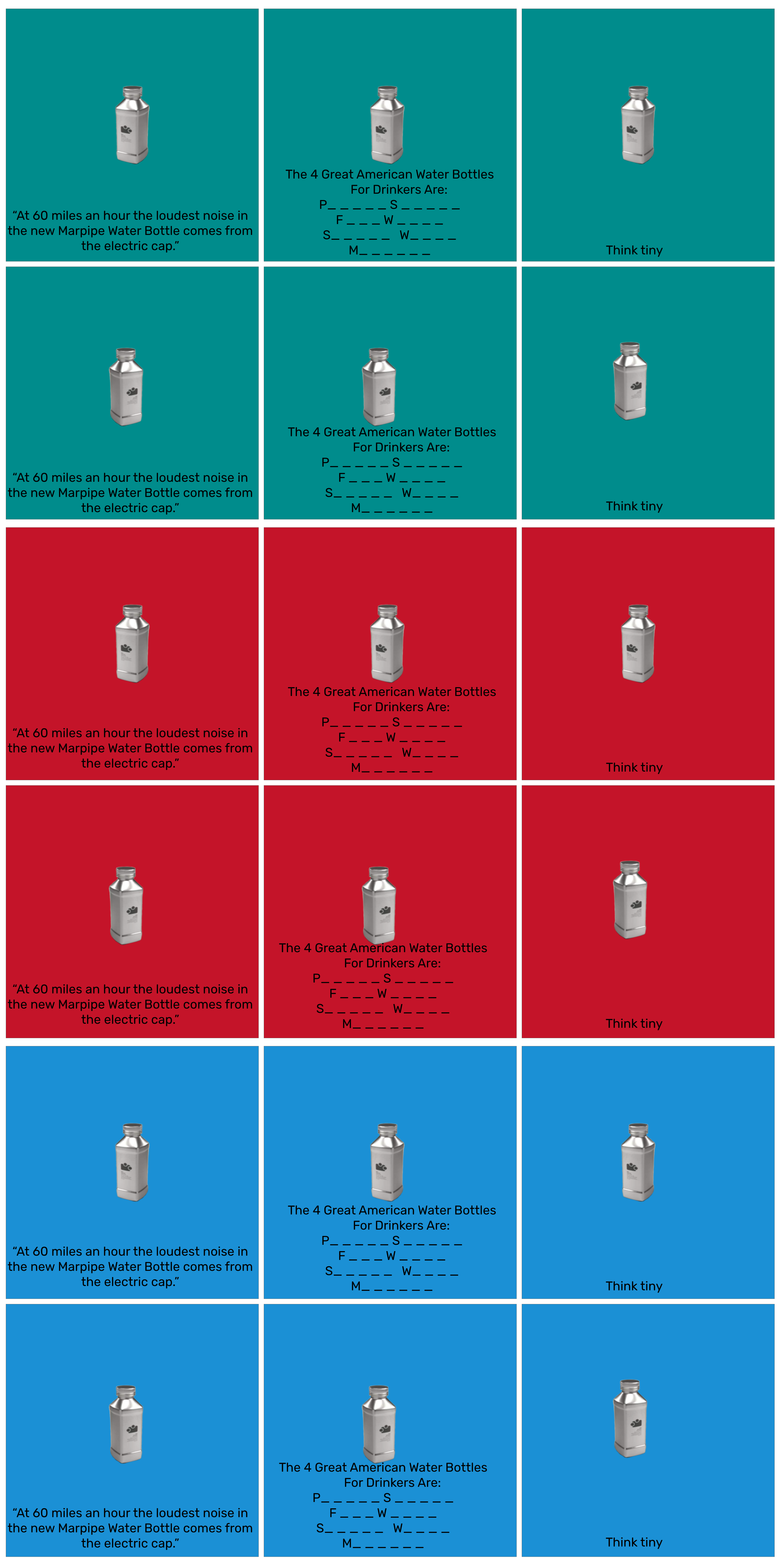 Make sure to name your ads by the components that make them up. For example, the first ad in the top left might be called: Background(MarrsGreen)_Product(LeftTilt)_Copy(BigIdea1). This will save you time analyzing the data later.