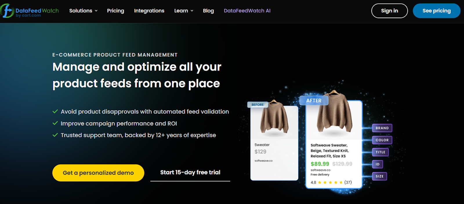DataFeedWatch is a feed-first tool. That makes it relevant here even though it is not a creative automation platform in the same way some others are. If you think of Reddit DPA performance like cooking, DataFeedWatch is the step where you prep the ingredients well before anything goes on the plate.