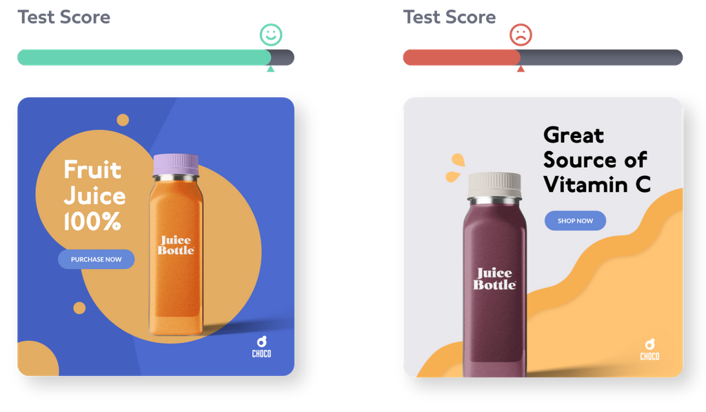 Maybe audiences liked that the juice bottle was front and center. Maybe they liked that particular shade of blue background. Maybe it’s the fact that the juice in the bottle was orange. Or maybe “Purchase now” was just a really strong CTA.
