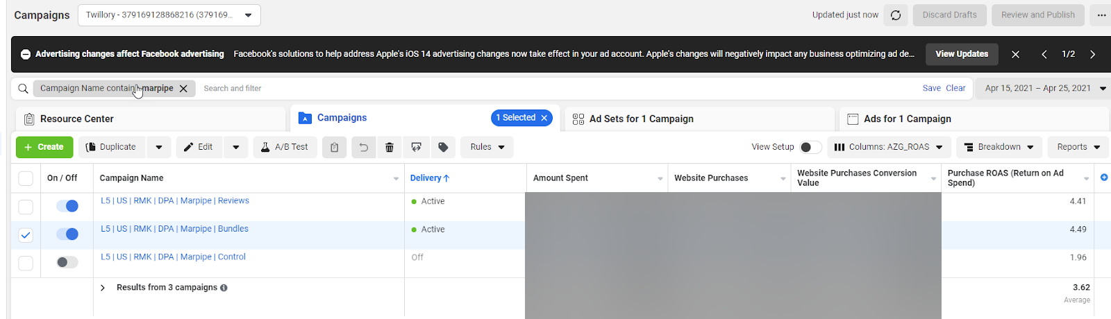 Control ROAS: 1.96